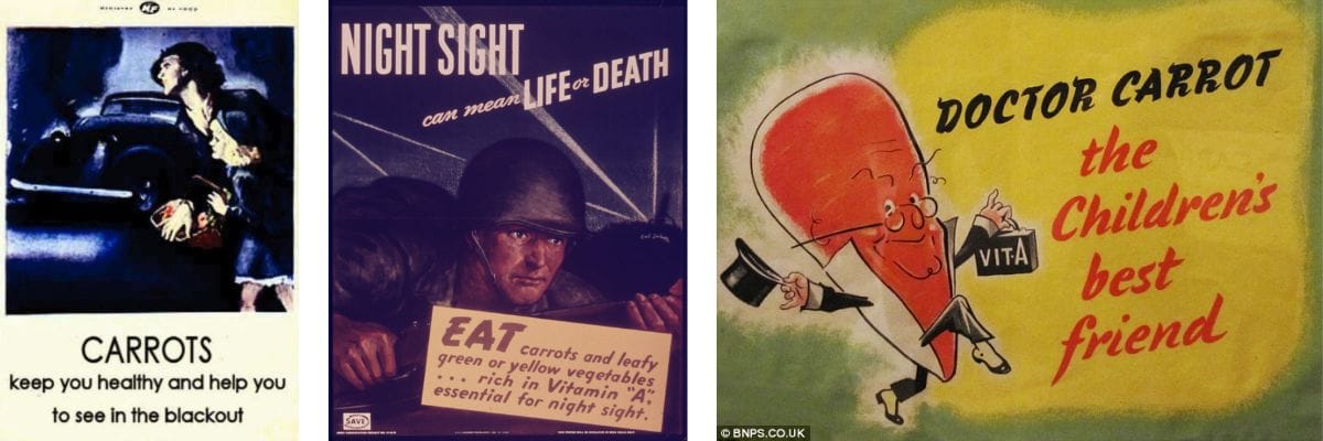 During World War II, British posters claimed carrots improved night vision.